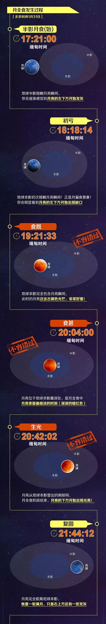 那么,今年的“血月”將在哪些時(shí)間段出現?為什么還會(huì )有藍月亮?欣賞和拍攝的最佳時(shí)間、位置怎么選?提前要準備些什么呢?答案都在此啦↓