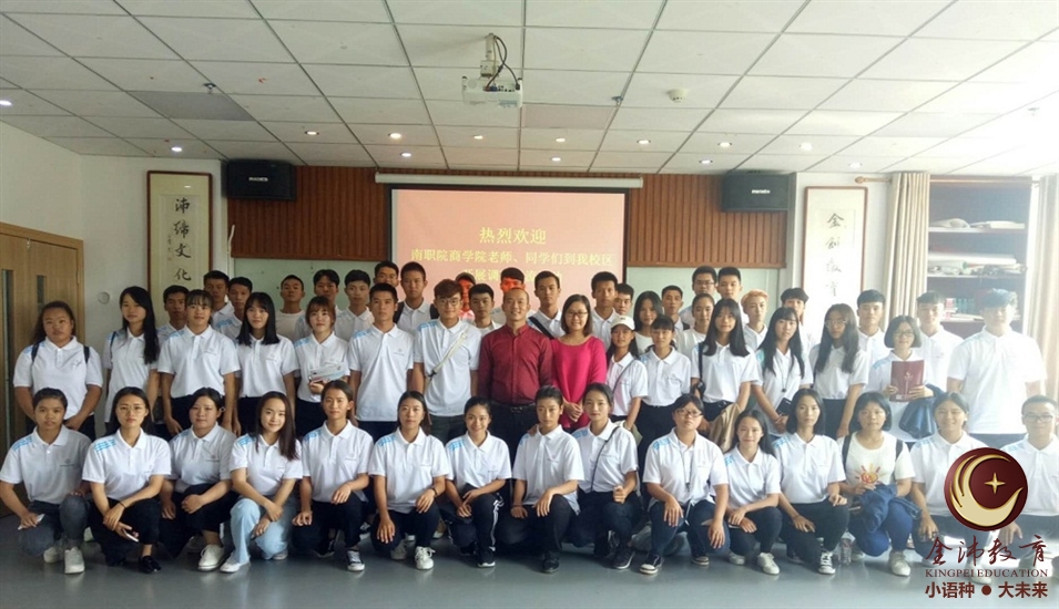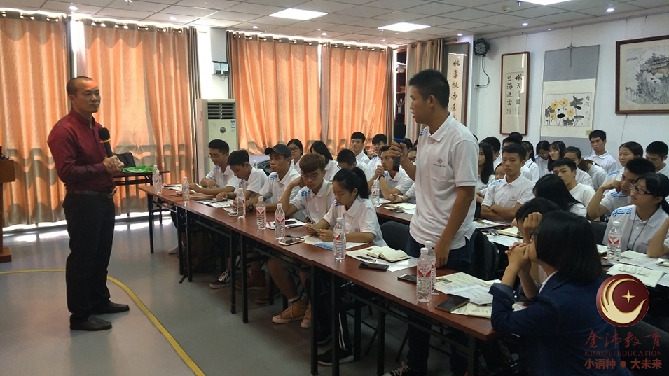 同學(xué)們對粟宥朝董事長(cháng)的介紹反響熱烈。由于在場(chǎng)的同學(xué)們都是商務(wù)方向的學(xué)生,在國際交流和商貿等方面的信息很感興趣。金沛教育作為廣西首屈一指的東盟語(yǔ)言培訓品牌,業(yè)務(wù)范圍涵蓋教育培訓和國際交往,也讓同學(xué)們耳目一新。