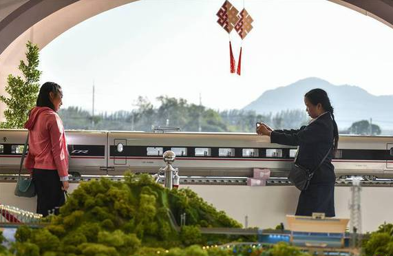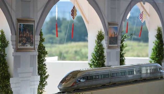 這是在泰國東北部呵叻府巴沖縣舉行的中泰鐵路合作項目一期工程開(kāi)工儀式上展出的中國復興號高鐵列車(chē)模型(12月21日攝)。