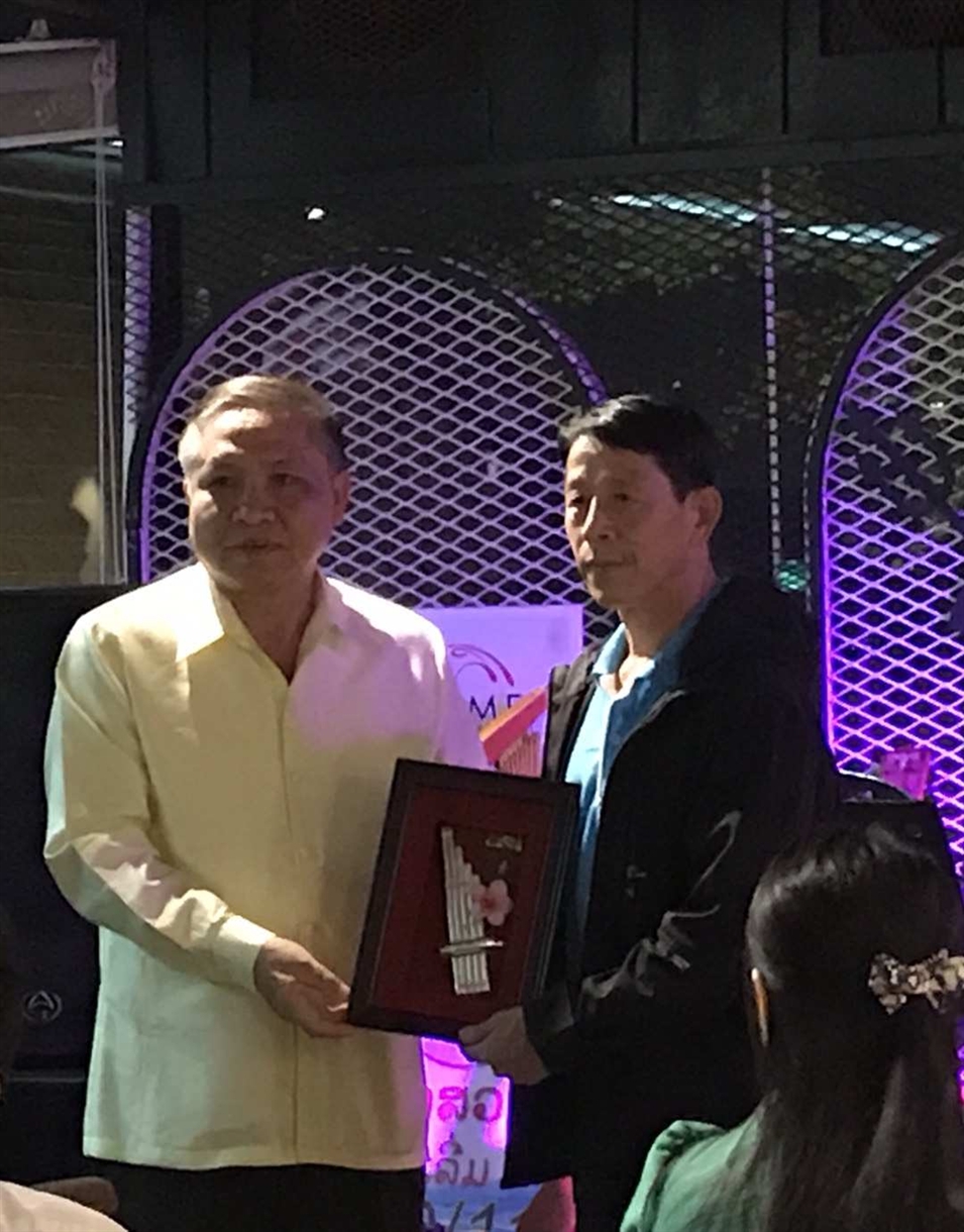 11號晚上老撾國立大學(xué)校長(cháng)宋西·諾潘賽為劉傳書(shū)老師、王慶陽(yáng)老師頒發(fā)紀念品,表示對兩位老師的感謝,感謝兩位老師對老撾國立大學(xué)的支持與幫助,并希望兩位老師以后能常來(lái)國立大學(xué)交流訪(fǎng)問(wèn)。