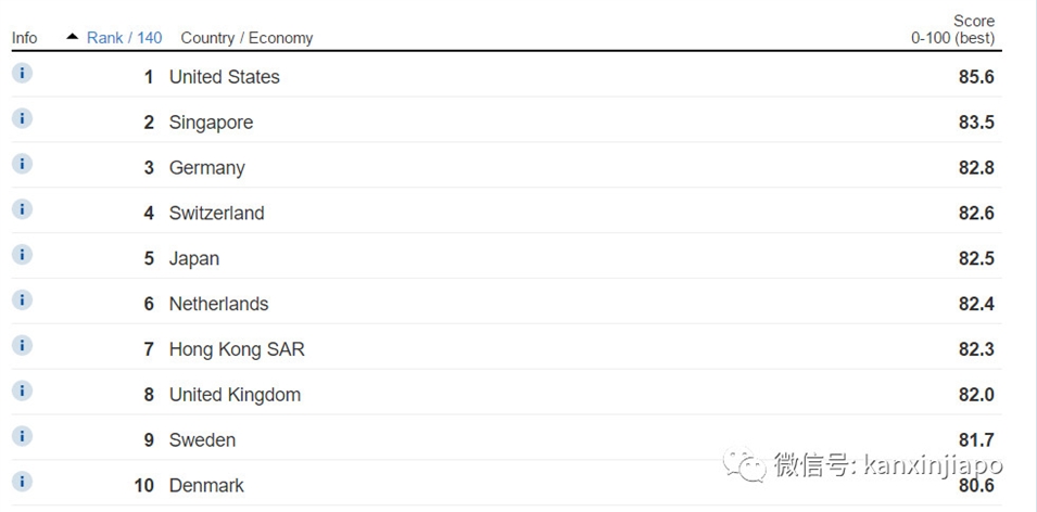 本次新加坡以2.1分的差距位居第二,其中在交通、衛生和貿易開(kāi)放方面表現尤為出色。