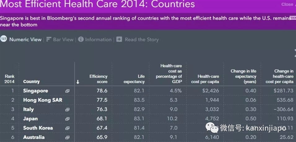 在彭博社發(fā)布的世界各國醫療效率排名表中,新加坡的醫療效率更是排到了全球第一!